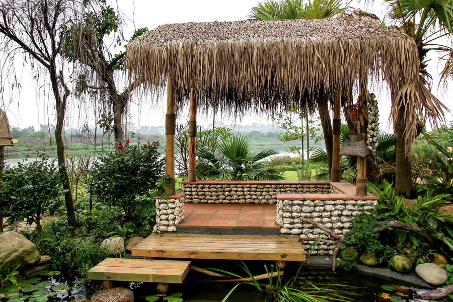 而木结构的构、建筑物则不然。现代园林中,室外木制品采用越来越广泛,有木廊架、木阁亭、木制休闲平台、木椅、木栈道等,尽管所用木料在制作前均经过防腐、防裂处理,但变色、开裂现象仍屡屡发生,而木结构制品成本较高,维修费用相对也较高,给施工、建设单位带来了沉重的经济负担,但通过多年的经验积累,我们发现只要注重把握施工过程中的几个细节,就会取得事半功倍的效果。首先对确认中标工程中所需材料进行分类,一旦明确需用木材,即应先行采购,找好妥当之处进行晾晒、风干;其次安装前对加工好的木制品上桐油或清漆,以防水分入侵而发霉、变色;三是除木榫相连的,尽量采用铜钉,钉前先用钻孔机钻透木板,切忌用力击打,使木材开裂。