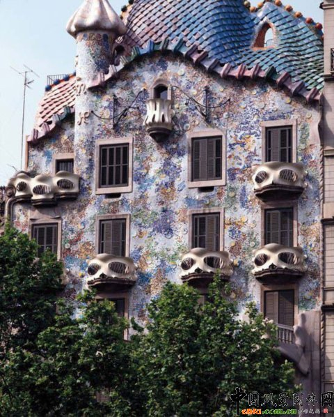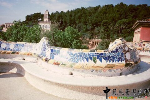 在高迪的眼中,一切灵感来源于自然和幻想:海浪的弧度、海螺的纹路、蜂巢的格致、神话人物的形状,都是他酷爱采用的表达思路,他痛恨硬邦邦的直线,乐于用柔和的曲线和五彩的颜色表达一切,甚至每一个烟囱的造型、每一块砖的摆法,他都有兴趣玩味半天。因此他承包的工程都成了鸿篇巨制,古埃尔公园整整耗费了14年,而圣家族直到他死后仍未竟,如果投资稳定(每年需耗资300万美元)的话,至少也得再建65年方可竣工。