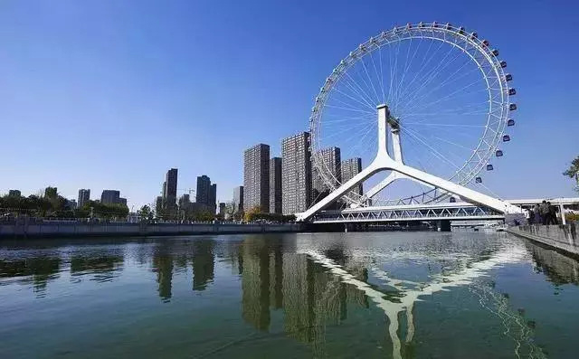 这个集跨河、桥轮为一体的“摩天轮”建筑,将光观和交通的功能完美融合一体。直径为110米,高达120米(相当于35层楼高度),48个360度透明座舱,可同时供384人进行观光。这个“摩天轮”不仅是天津的代表性建筑,更是世界是唯一建在桥上的摩天轮。