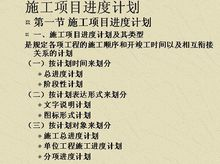 为了对施工项目实行进度计划控制,首先必须编制施工项目的备种进度计划。其中有施工项目总进度计划、单位工程进度计划、分部分项工程进度计划、季度和月 (旬)作业计划,这些计划组成一个施工项目进度计划系统。计划的编制对象由大到小,计划的内容从粗到细。编制时从总体计划到局部计划,逐层进行控制目标分解,以便证计划控制目标落实。执行计划时,从月 (旬),作业计划开始实施,逐级按目标控制,从而达到对施工项目整体进度目标控制。